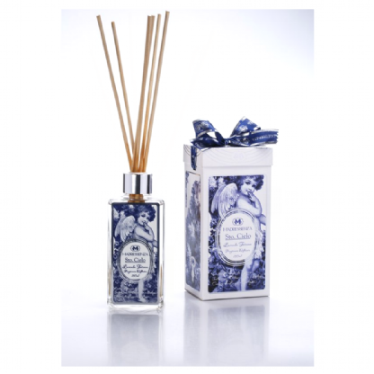 Elegante e angelical, um luxuoso frasco de vidro com líquido que exala o mais puro e encantador dos aromas, válvula prata, acompanha uma caixa decorativa e 6 unidades de varetas de madeira ecológica. Combina com qualquer ambiente, em qualquer situação.