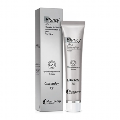 Blancy Olhos é um clareador de olheiras azuis e marrons que uniformiza o tom da pele. Possui textura gel-creme leve e de rápida absorção. Blancy Olhos contém ativos que reduzem os níveis de melanina e melhoram a microcirculação agindo duplamente nas olheiras.