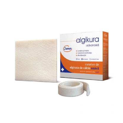 Algikura é um curativo composto por fibras de alginato, ricas em cálcio, extraídas de algas marinhas, esterilizado por radiação gama (RG). Age absorvendo o excesso de exsudato, mantendo o leito da ferida com umidade adequada ao processo de cicatrização e em caso de feridas com pequenos sangramentos, os íons de cálcio (Ca++) presentes no curativo, auxiliam no processo de hemostasia.