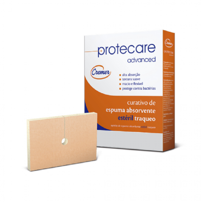 Limpar a área ao redor do orifício (traqueostomia ou dreno) conforme protocolos da instituição ou instrução do profissional de saúde responsável. Recomenda-se soltar os cadarços de fixação da cânula para facilitar a limpeza. Secare limpar a pele circundante cuidadosamente com gaze estéril. Protecare traqueo curativo de espuma absorvente Cremer Advanced estéril é recortável para melhor adaptação às necessidades do paciente.