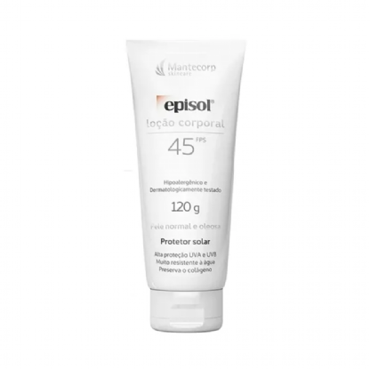 Loção Corporal Episol FPS45 é um protetor solar com textura não-oleosa formulada com um conjunto de filtros que oferecem alta proteção contra os efeitos nocivos dos raios UVA/UVB e Infravermelho A.