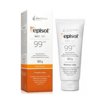 Episol Sec OC controla a oleosidade da pele por 12h, reduz os poros e proporciona sensação de pele limpa com toque seco e efeito matificante. Oferece alta proteção contra dos danos solares causados pelos raios UVA/UVB e Infravermelho A. Tecnologia Skin Self Control: Nova geração em fotoproteção para pele oleosa (glicoesferas de sílica précarregadas com os ativos Miniporyl e Nelupure) 12h de controle da oleosidade e brilho facial Reduz o tamanho e número de poros (ação adstringente) Alta proteção UVA/UVB e Infravermelho A Previne o envelhecimento precoce Toque seco e Efeito Matte Sensação de pele limpa Preserva o colágeno Disponível nos FPS30, FPS60 e FPS99 Não obstrui os poros Textura agradável de rápida absorção e fácil espalhabilidade Uso diário Muito resistente à água.