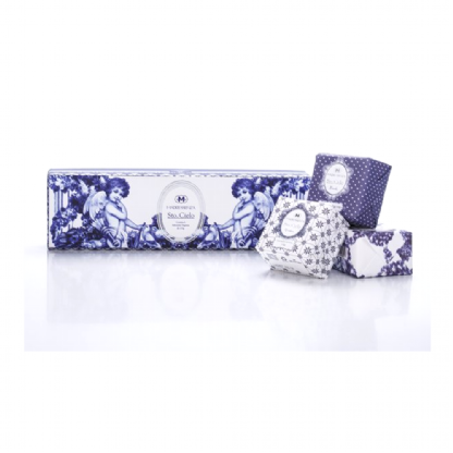 Todos os aromas da coleção Sto. Cielo reunidos em uma linda e delicada caixinha para presentear aquela pessoa especial. Espuma cremosa e duradoura. O sabonete da Coleção Sto. Cielo é produzido a partir de matéria prima vegetal. Contém glicerina, manteiga de karité e amido vegetal que proporcionam um toque aveludado e sedoso.