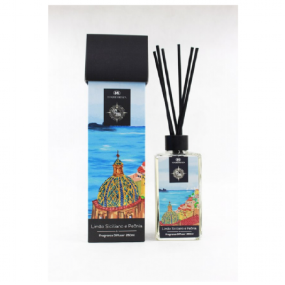 Embalado em um belo frasco de vidro, acompanha uma caixa decorativa e 1 conjunto de 6 varetas de fibra sintética, adicionando assim elegância a qualquer ambiente.