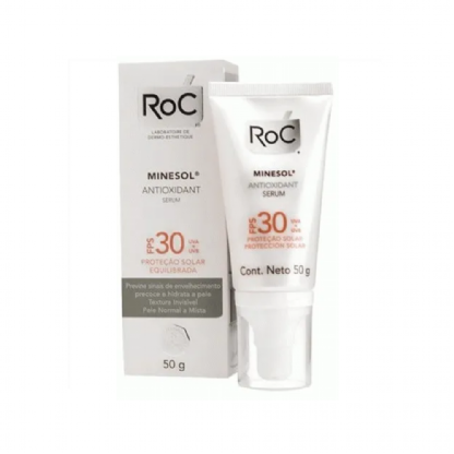 O Protetor Solar Roc Minesol Antioxidant FPS 30 é indicado para pessoas de pele normal a seca e também para pele muito sensível à queimaduras solares. Sem fragrância.