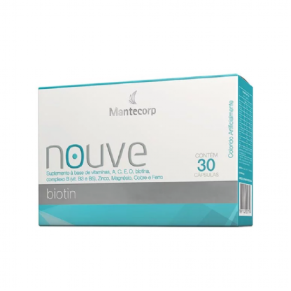 Nouve Biotin é um nutricosmético que possui ingredientes que contribuem para proporcionar unhas e cabelos muito mais saudáveis. Indicado por dermatologistas, possui uma combinação sinérgica de vitaminas e minerais essenciais, contribuindo para o fortalecimento de cabelos diminuindo a queda, estimulando o crescimento e unhas melhorando a descamação, estimulando o crescimento. Benefícios para cabelos e unhas clinicamente comprovados.