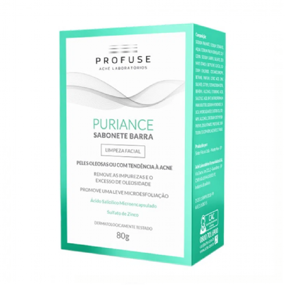 Profuse Puriance Sabonete Barra remove as impurezas, desobstruindo os poros e reduz a pegajosidade, obtendo uma pele limpa com aspecto saudável, sem ressecamento ou irritação. É indicado para peles oleosas com poros dilatados, acnéicas ou com imperfeições. Hipoalergênico.