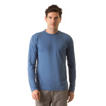 Proteção não sai com lavagens. Possui modelagem ajustada com discreto decote em V. Seu tecido apresenta ótimo caimento e toque agradável, macio e gelado, além de promover boa respirabilidade e rápida absorção de suor.